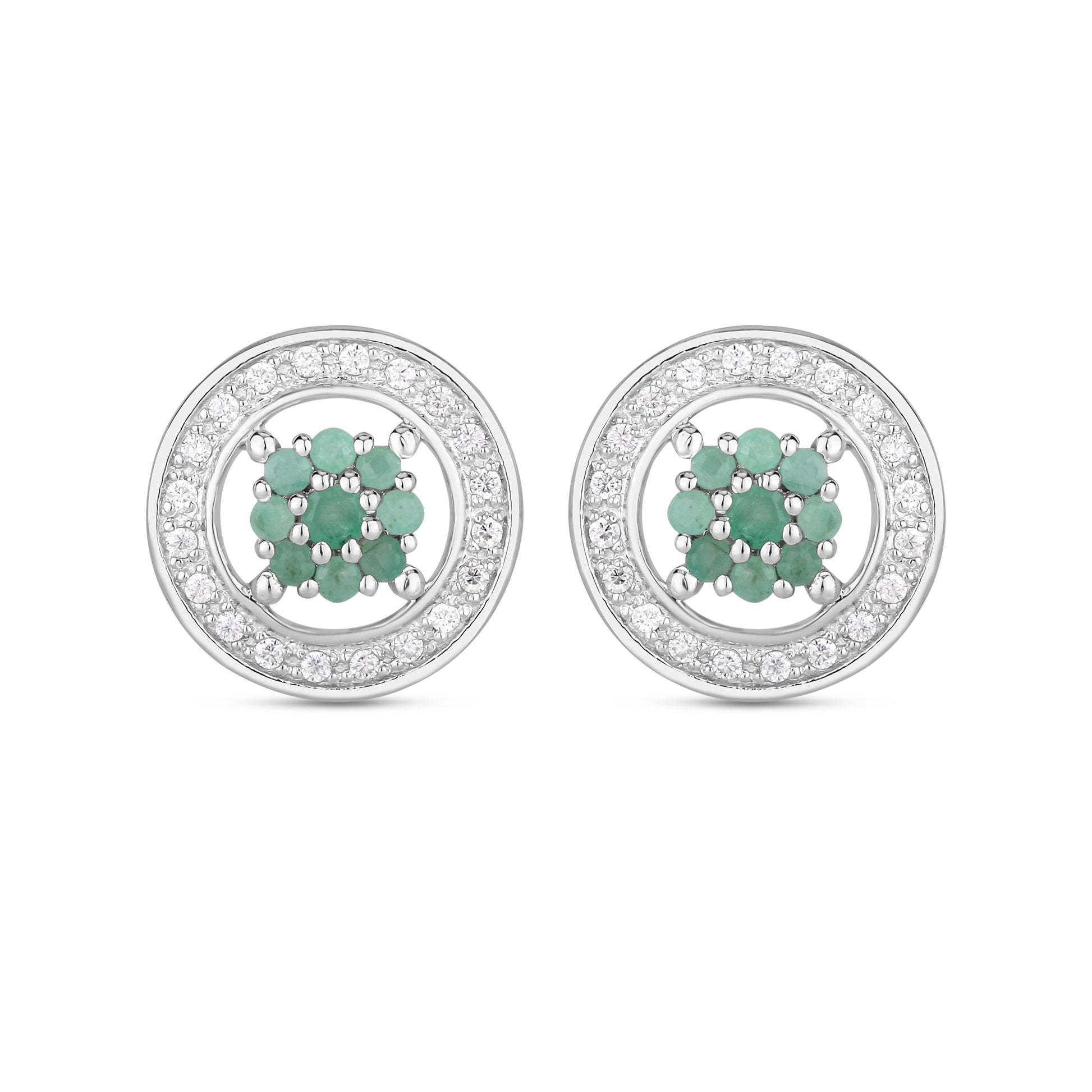 Beautiful ear studs in silver with rare Sakota emeralds and moissanites