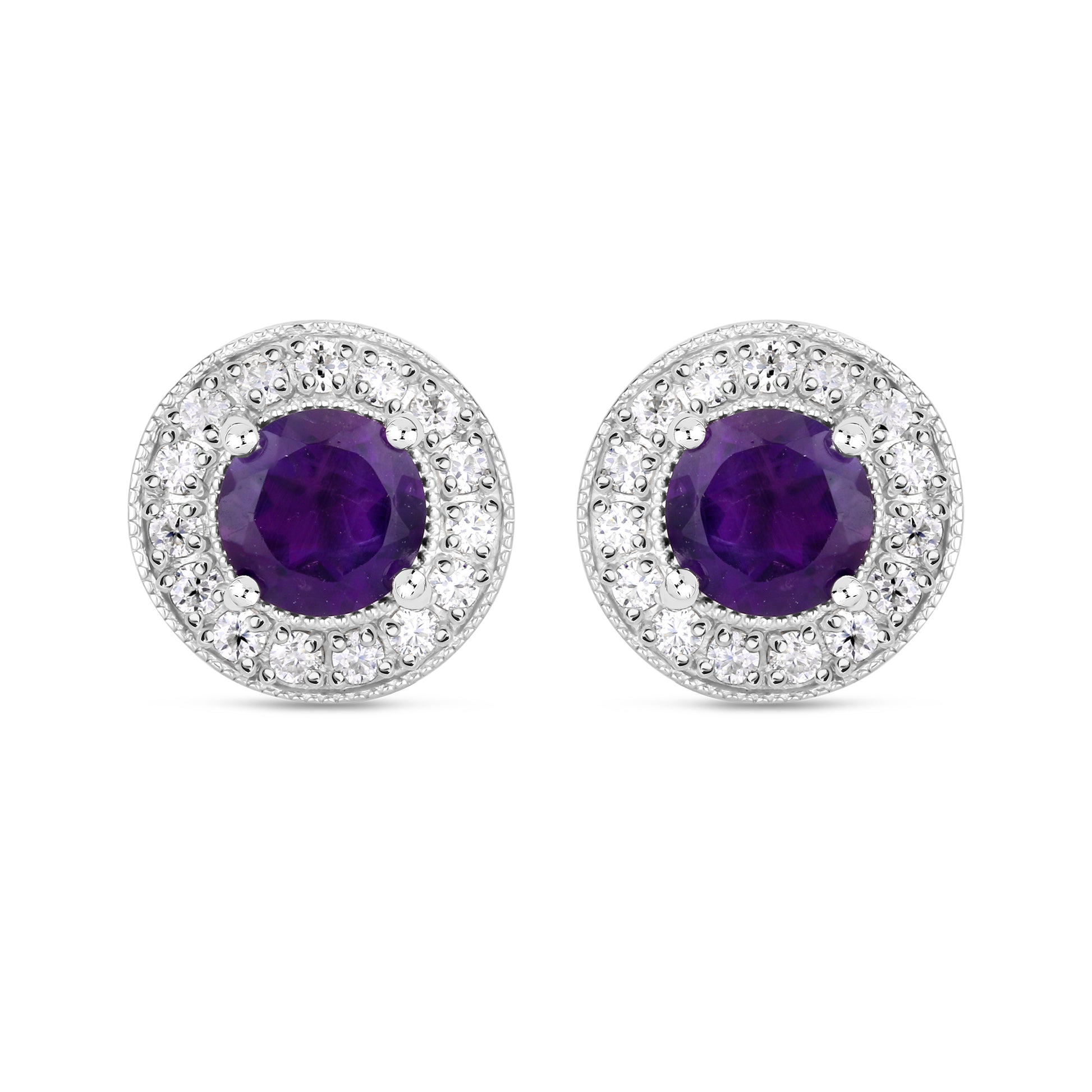 Beautiful ear studs in silver with natural African Amethysts and moissanites